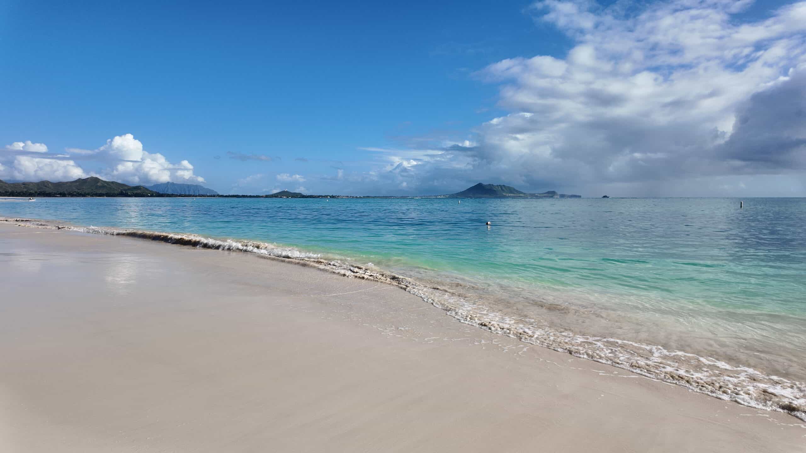 Yes – Kailua Beach is swimmable along the shore, especially in the morning before the wind picks up. The water is clear with a gentle slope and sandy bottom, making it ideal for a relaxing swim.